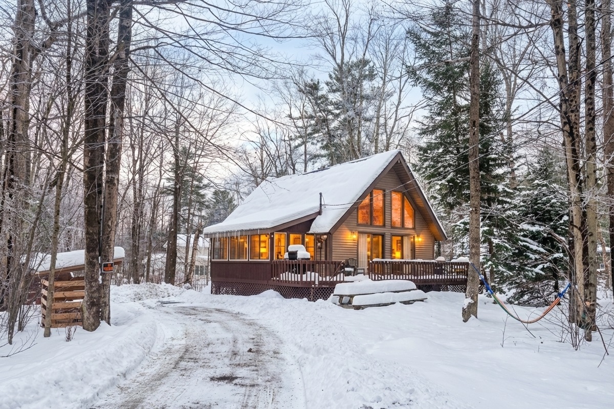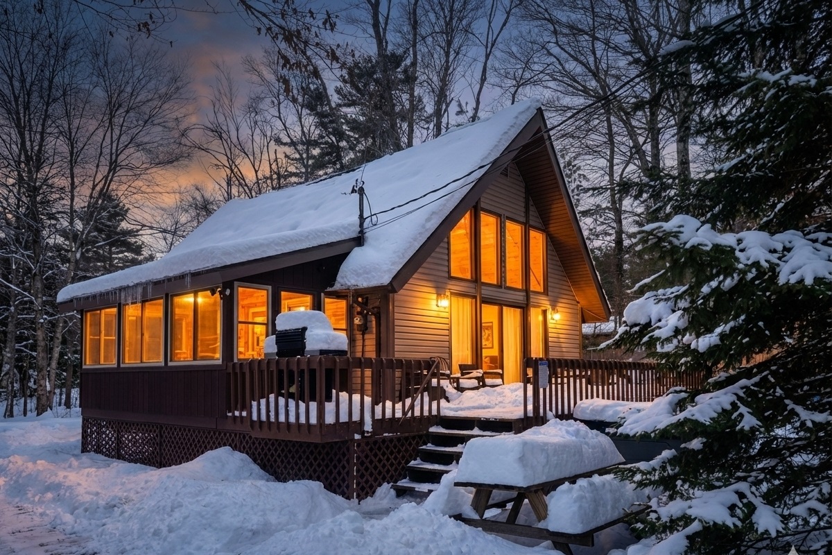 3 Bedrooms • 2 Bathrooms 2 Baths • Sleeps 4-8This 3 bedroom 2 bath chalet style home is in a prime location with a short walk (5-7 minute walk) to the lake and beach, with a hot tub and two kayaks included to use, as well as near the fishing lake . It is also very close to Big Boulder Ski and Jack Frost Mountains. This chalet has a great 3 season room along with a nice size deck perfect for entertaining! Your family will be close to everything when you stay at this centrally-located place.